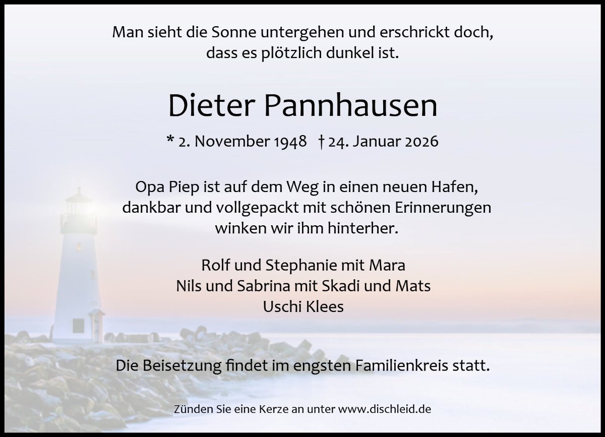 Mit großer Bestürzung haben wir vom Tod von Dieter erfahren.