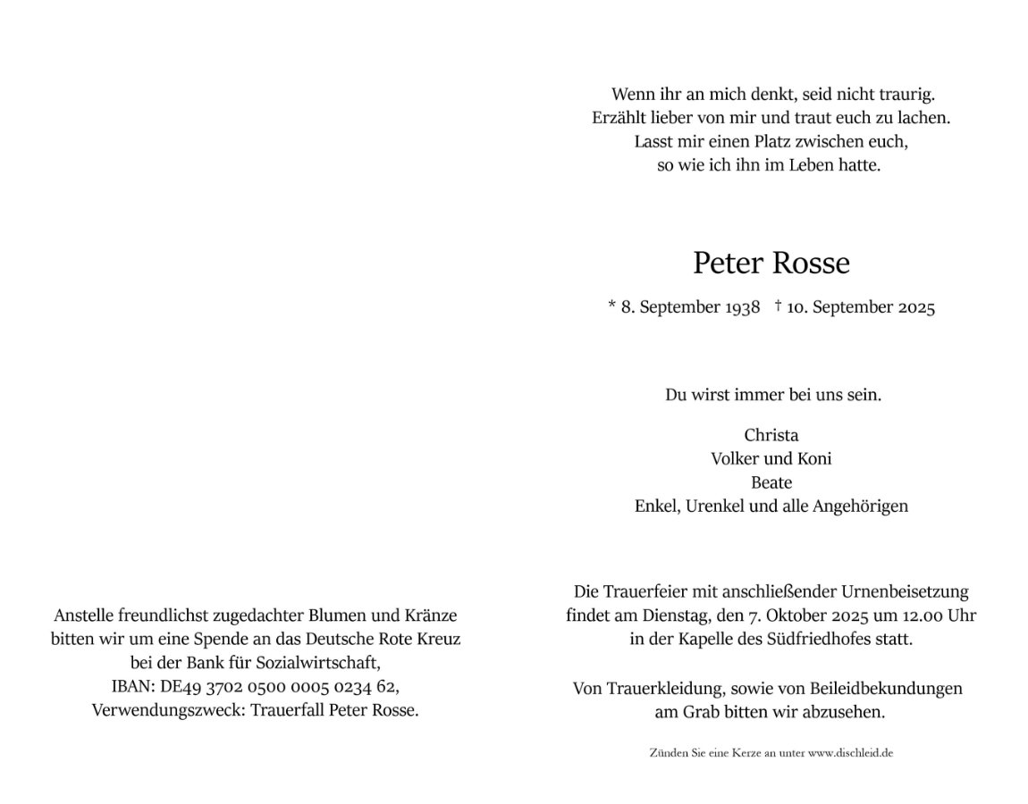 Sprechen Sie im Kondolenzbuch den Hinterbliebenen Ihr Beileid aus und teilen Sie persönliche Gedanken und Erinnerungen mit anderen.